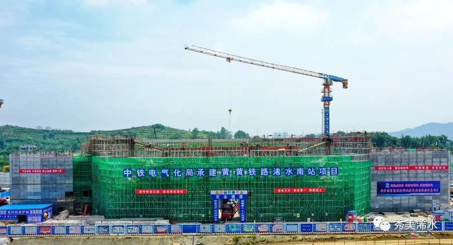 5月15日,浠水南站主体结构封顶。目前站房工程已完成混凝土屋面结构施工,正在进行二次结构施工。
