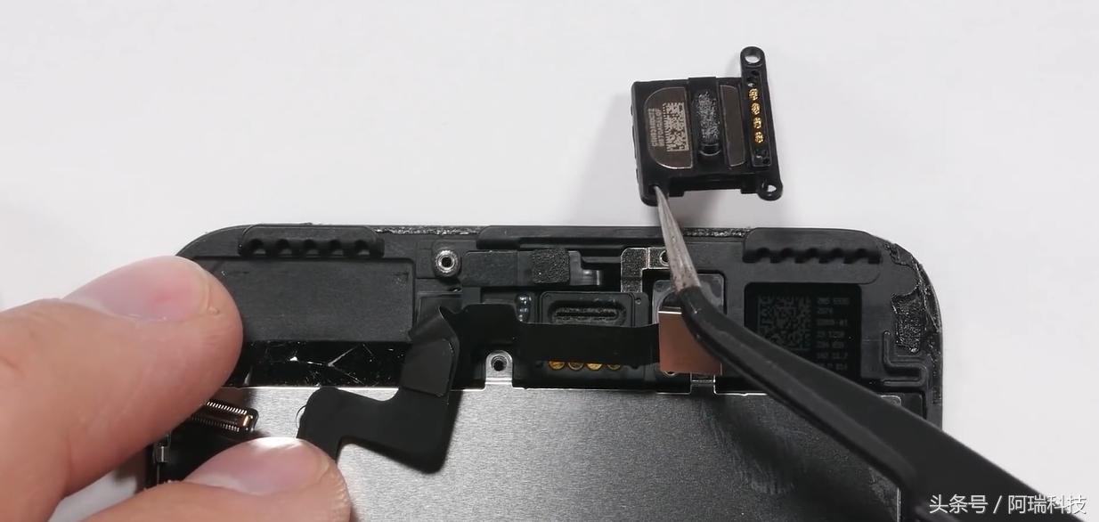 12.拧下耳机听筒上方金属保护壳上的五颗螺丝。