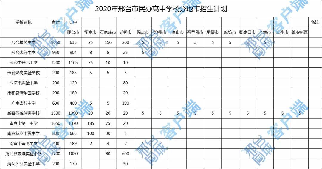 而邢台精英中学招生除邢台外,生源招生计划着重放在衡水、石家庄、邯郸三个地级市。