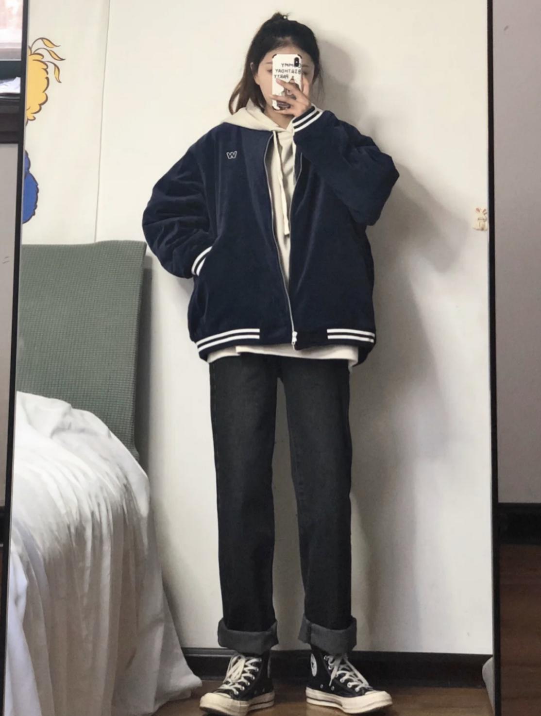 3. 棒球服+牛仔裤