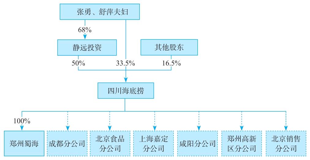 1、2014年海底捞开启拆分价值链行动,首先分6个步骤通过成立合资子公司、签订股权转让协议等操作拆分了调味品业务。调味料业务板块拆分前的股权架构如下图: