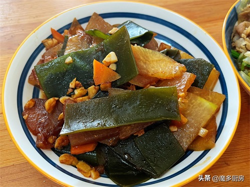 做法分享:1、冬瓜去皮去瓤,切成薄片备用;有机鲜海带块冲洗后备用;