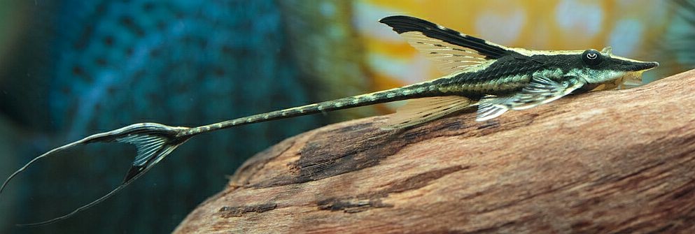 尖管吻鲶因其细长的外表而得名,它有一根树枝般的长鼻子和细长的尾巴,可以说是鱼类中纤细的模特儿。除了独特的外表,这种鱼的行为也让它从鱼群中脱颖而出。尖管吻鲶并不喜欢悠闲地游来游去,相反,你经常可以看到它们附着在鱼缸里的东西表面。当它们准备转移到别的东西上时,它们会迅速地飞奔过去,而它们被捕获后却往往会一动不动。